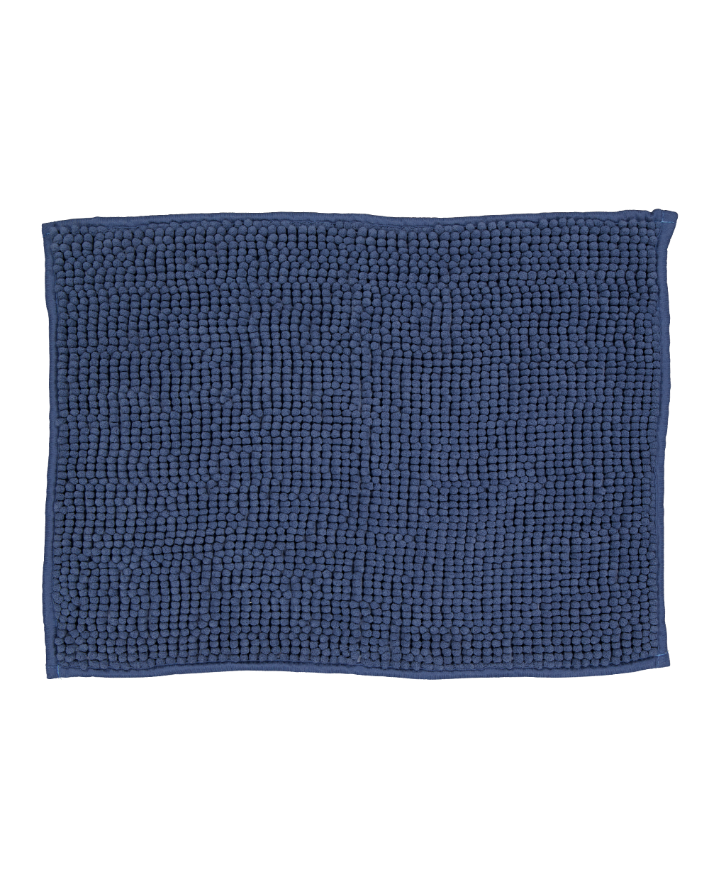 Deze blauwe badmat is gemaakt van 100% polyester en heeft een zacht oppervlak met kleine lusjes. Dankzij het materiaal droogt de badmat snel en voelt hij comfortabel aan onder je voeten. Gebruik hem in de badkamer voor extra comfort en veiligheid, zodat je altijd prettig en veilig uit de douche of het bad stapt.