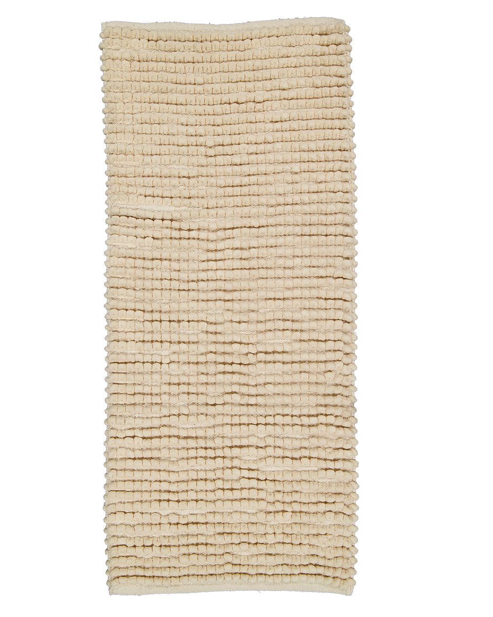 Deze badmat is wit van kleur en heeft een polyester voering. De bovenkant is volledig gemaakt van katoen, wat zorgt voor een zachte en goed absorberende ondergrond. Zo stap je comfortabel uit de douche of het bad en droog je je voeten eenvoudig af.