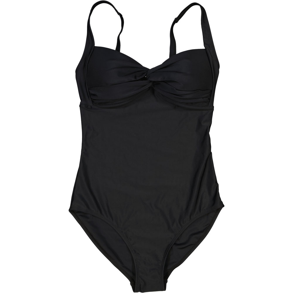 Dit zwarte badpak voor dames is gemaakt van een gladde, comfortabele stof met stretch. De voering zorgt voor extra draagcomfort. Het model heeft smalle schouderbandjes die je makkelijk kunt verstellen voor de beste pasvorm. De geplooide cups zorgen voor een stijlvolle uitstraling. In een klassieke, zwarte kleur die eenvoudig te combineren is met andere accessoires.