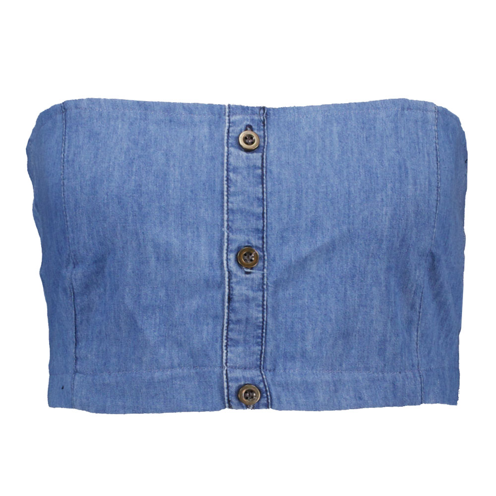 Deze repurposed bandeautop is onmisbaar voor op een festival. De bandeautop is one size en is gemaakt van onze herbruikbare bedrijfskleding. Het model heeft knoopjes aan de voorkant en aan de achterkant zit een korsetsluiting. Draag de bandeautop in combinatie met een blazer en pantalon of draag er een blouse onder.