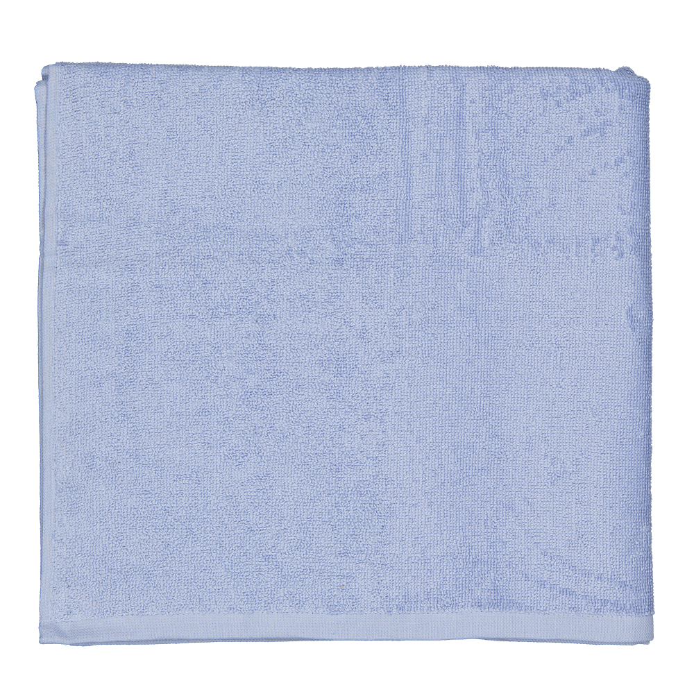 Deze lichtblauwe badhanddoek is gemaakt van zacht katoen van 400 gram per m². Dit betekent dat de stof natuurlijk fjin afdroogt maar ook vocht beter opneemt. Met het formaat van 70 x 130 cm sla je hem zo om je heen na een douche of bad. De brede zomen langs de uiteinden geven de handdoek een luxe uitstraling.