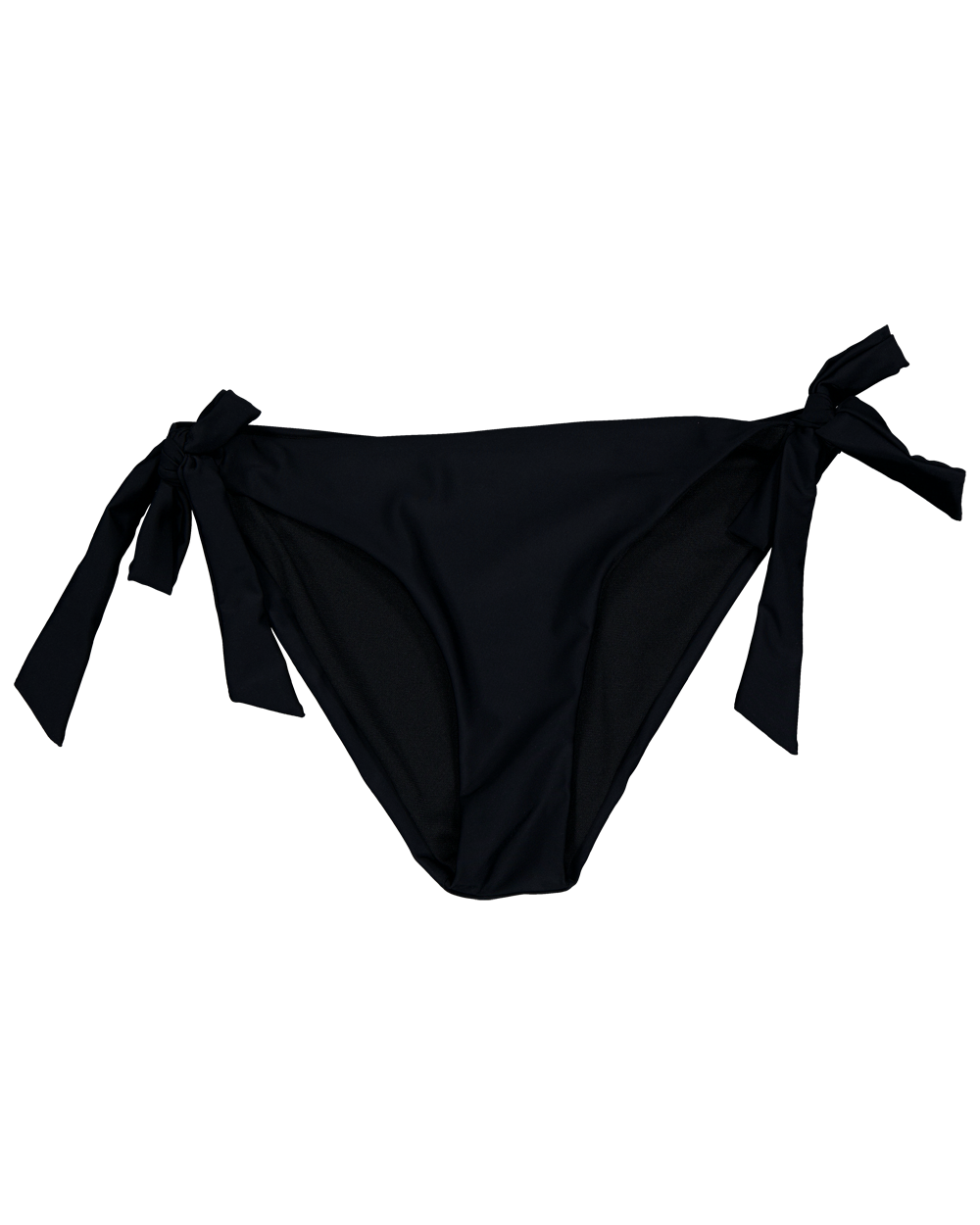 Deze zwarte bikini onderkant voor dames is gemaakt van 80% polyamide en 20% elastaan, wat zorgt voor een fijne pasvorm en comfortabel draagplezier. De striksluiting aan de zijkanten biedt de mogelijkheid om de fit eenvoudig aan te passen. Dit item is veelzijdig en gemakkelijk te combineren met verschillende bovenstukken.
