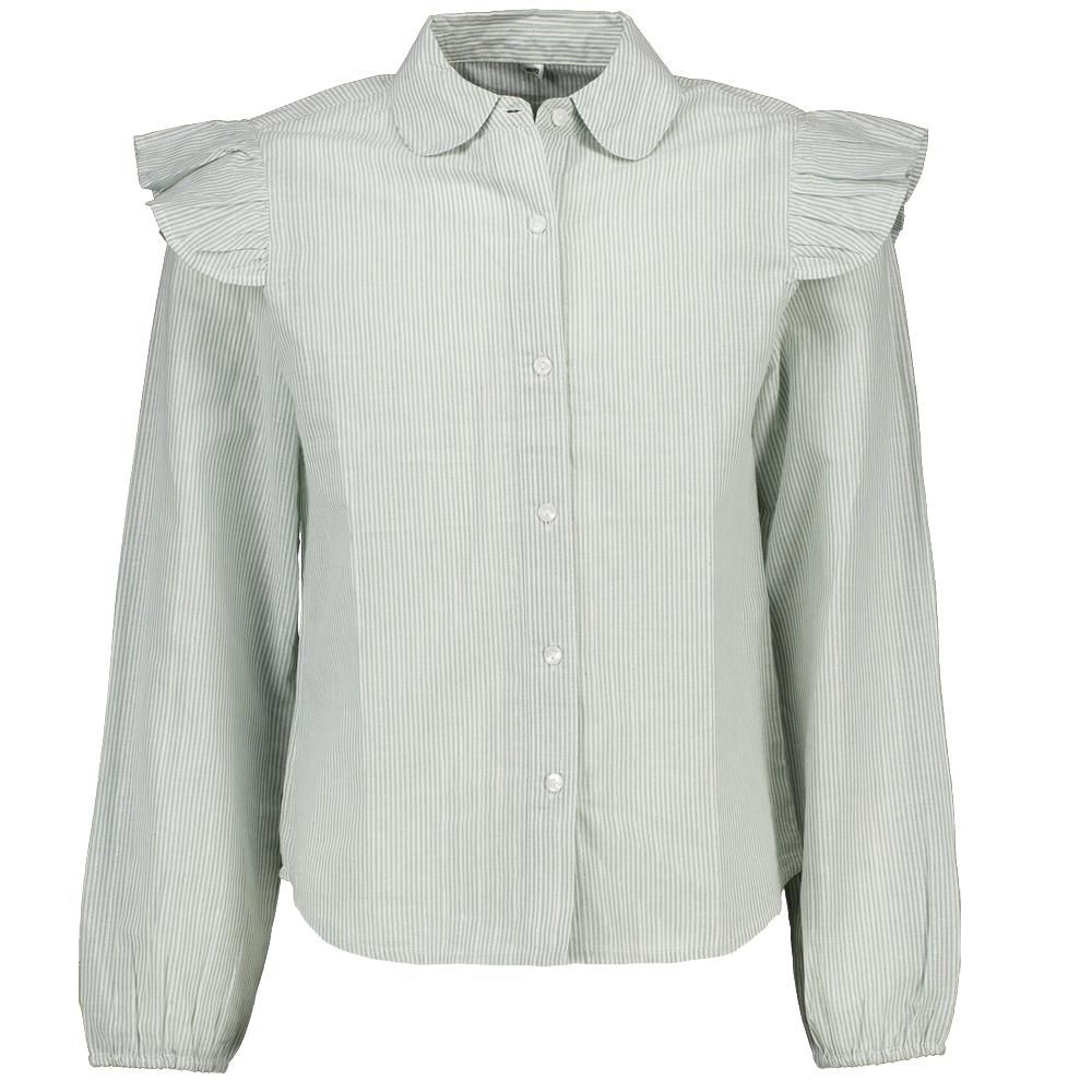 Deze blouse voor meisjes is gemaakt van 99% katoen met een vleugje metaaldraad, wat zorgt voor een lichte glans. De stijlvolle plooitjes op de schouders geven een speelse uitstraling. De blouse heeft een uniform grijze kleur en sluit met knopen, waardoor het makkelijk aan en uit gaat.