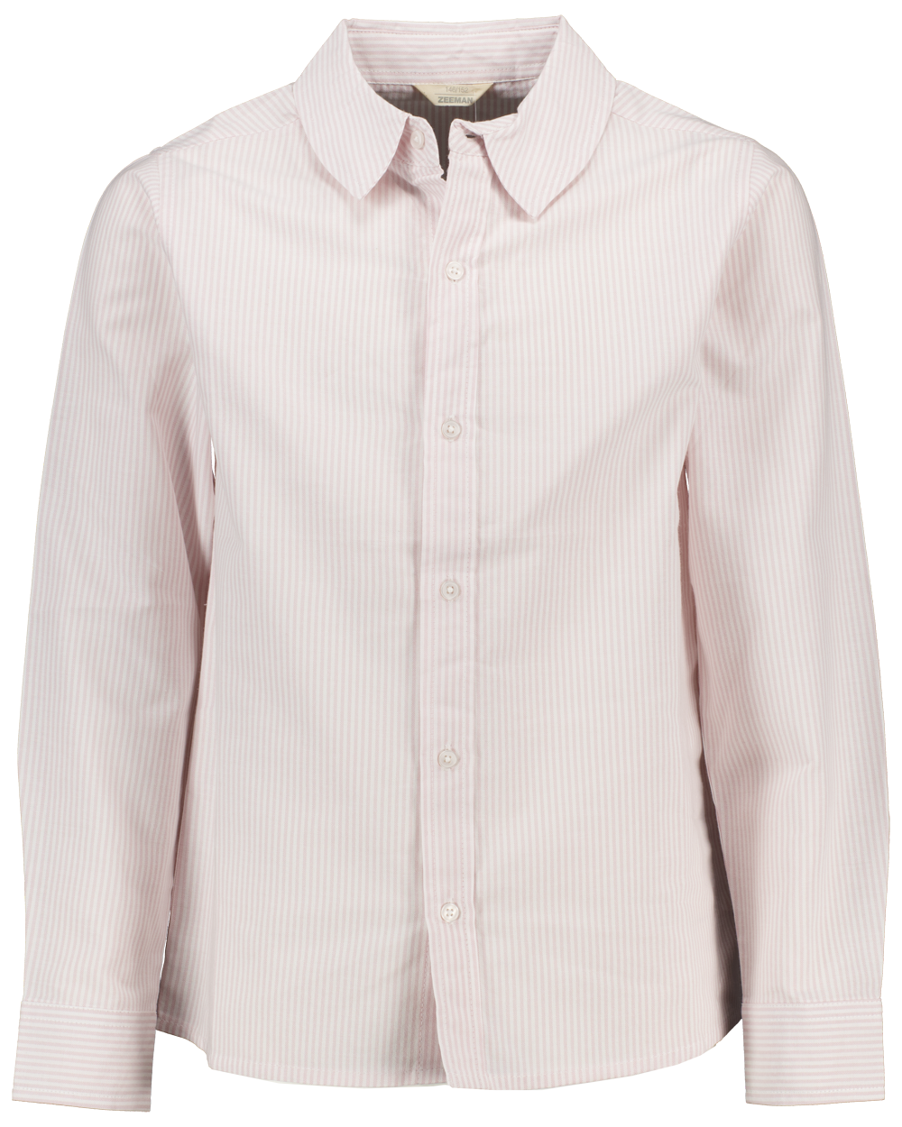 Deze jongensblouse heeft lange mouwen en een kraag met knoopsluiting. De witte stof is afgewerkt met smalle roze strepen. Dankzij het lichte materiaal zit de blouse comfortabel en is deze geschikt voor diverse gelegenheden.