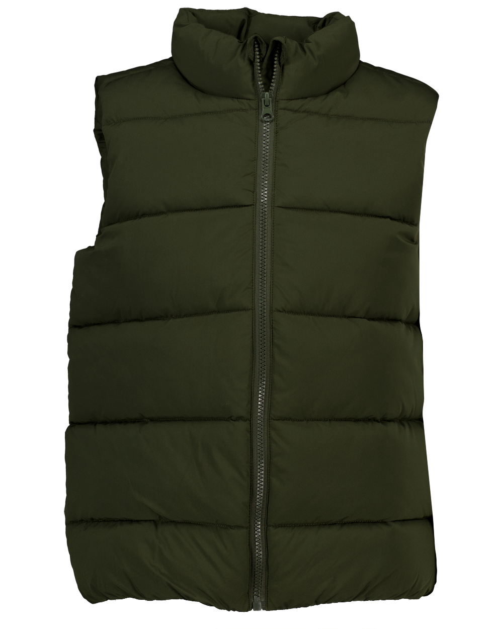 Deze groene bodywarmer voor jongens en meisjes is gemaakt van 100% polyester. De bodywarmer heeft een opstaande kraag en een ritssluiting aan de voorkant. De stof is doorgestikt in brede banen, wat zorgt voor een sportieve uitstraling en extra comfort. Ideaal om over een trui te dragen op frisse dagen en gemakkelijk te combineren met andere kledingstukken.