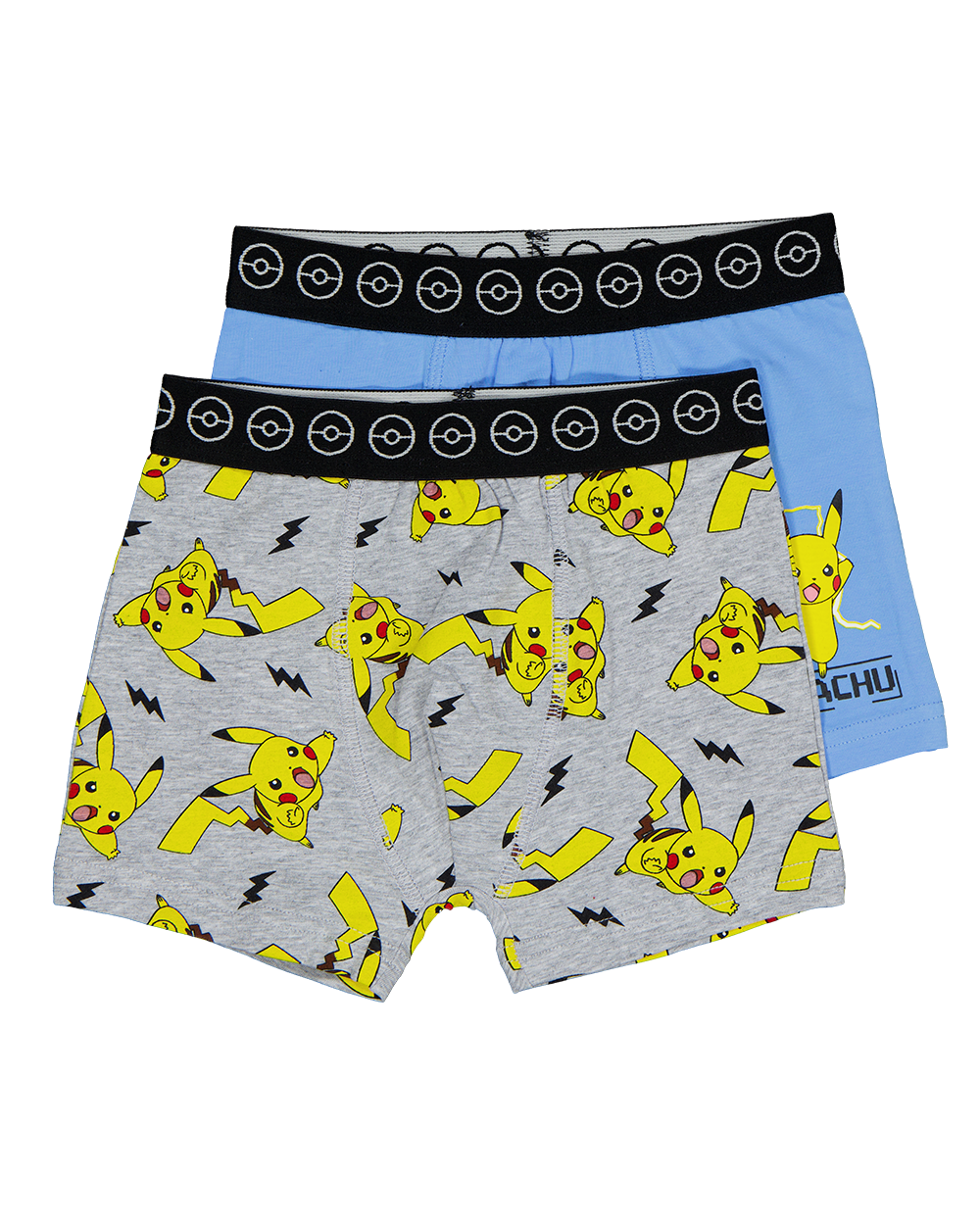 Deze jongensboxers hebben een gemêleerd patroon en zijn grijs van kleur. Ze zijn gemaakt van 95% katoen en 5% elastaan, wat zorgt voor comfort en een goede pasvorm. De set bestaat uit twee stuks met verschillende Pokémon-ontwerpen.