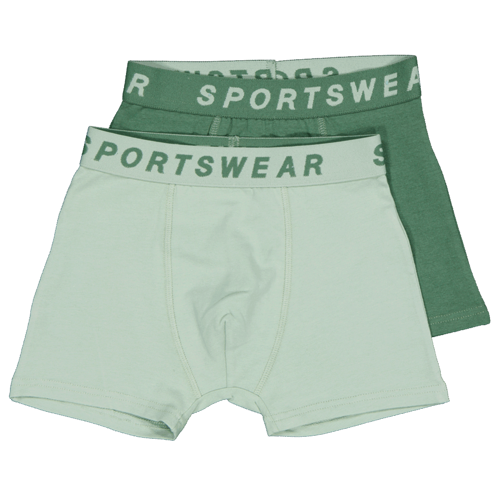 Set van 2 boxers in verschillende tinten groen. De elastische tailleband zorgt ervoor dat de boxers goed blijven zitten zonder te knellen. Door het gebruik van 95% katoen en 5% elastaan voelen ze zacht aan en zijn ze licht elastisch. De effen kleur geeft een rustige uitstraling.