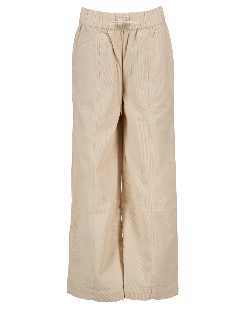 Deze beige meisjesbroek is gemaakt van 100% katoen. De broek heeft een elastische tailleband met zichtbare striksluiting. De stof heeft een lichte ribstructuur. Dankzij de rechte pijpen biedt deze broek veel bewegingsvrijheid en comfort.