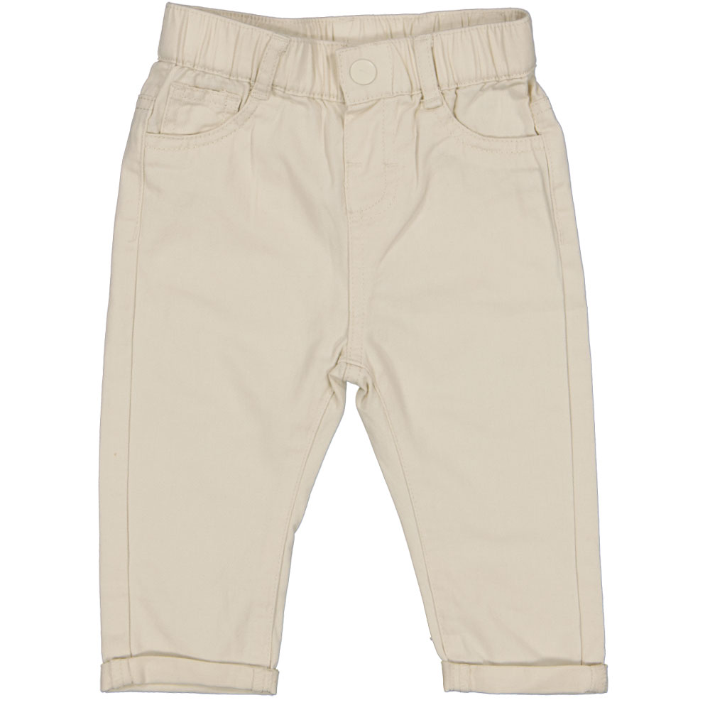Deze beige broek voor baby is gemaakt van 100% katoen en voelt stevig aan door de twill stof. De broek heeft lange pijpen en een elastische tailleband, waardoor je hem makkelijk aan- en uittrekt en hij goed blijft zitten. Dankzij de effen kleur is de broek eenvoudig te combineren met andere kleding. Ideaal voor dagelijks gebruik.