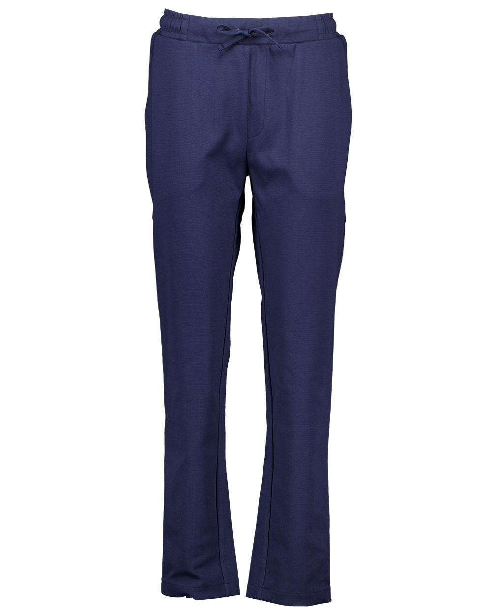 Deze blauwe herenbroek is vervaardigd uit katoen, polyester en elasthaan. De combinatie van materialen biedt een comfortabele pasvorm met voldoende stretch. Dankzij het tijdloze ontwerp is deze broek geschikt voor diverse gelegenheden.