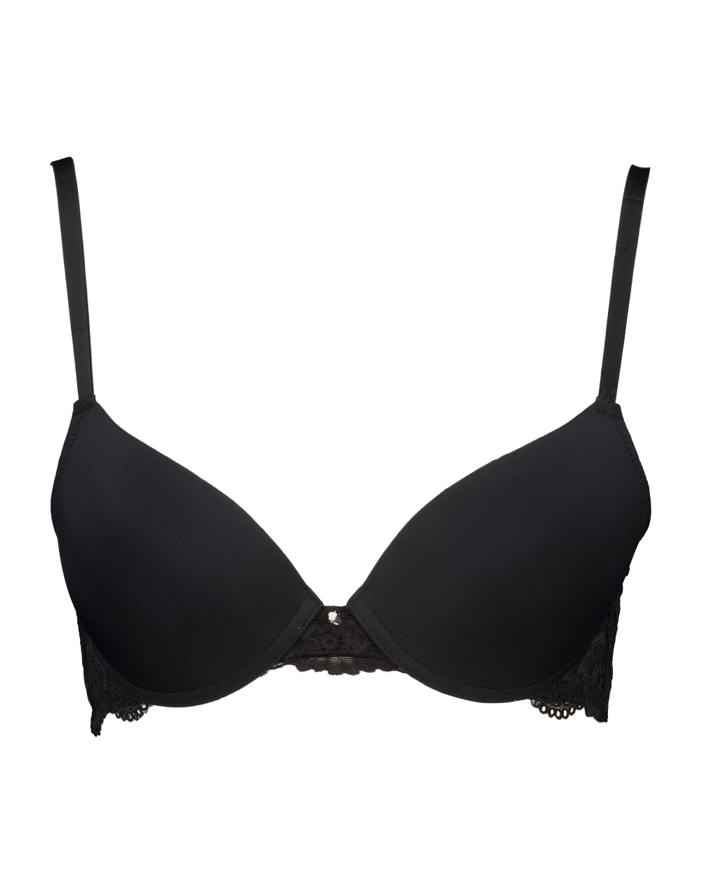 Deze push-up beha voor dames is uitgevoerd in het zwart en heeft gladde, licht voorgevormde cups. De beha is gemaakt van een combinatie van polyamide en elastaan, met kanten details aan de zijkanten en onderaan de band. De verstelbare schouderbandjes zorgen voor een goede pasvorm. Door de beugel met floating wire biedt deze beha extra ondersteuning waar nodig.