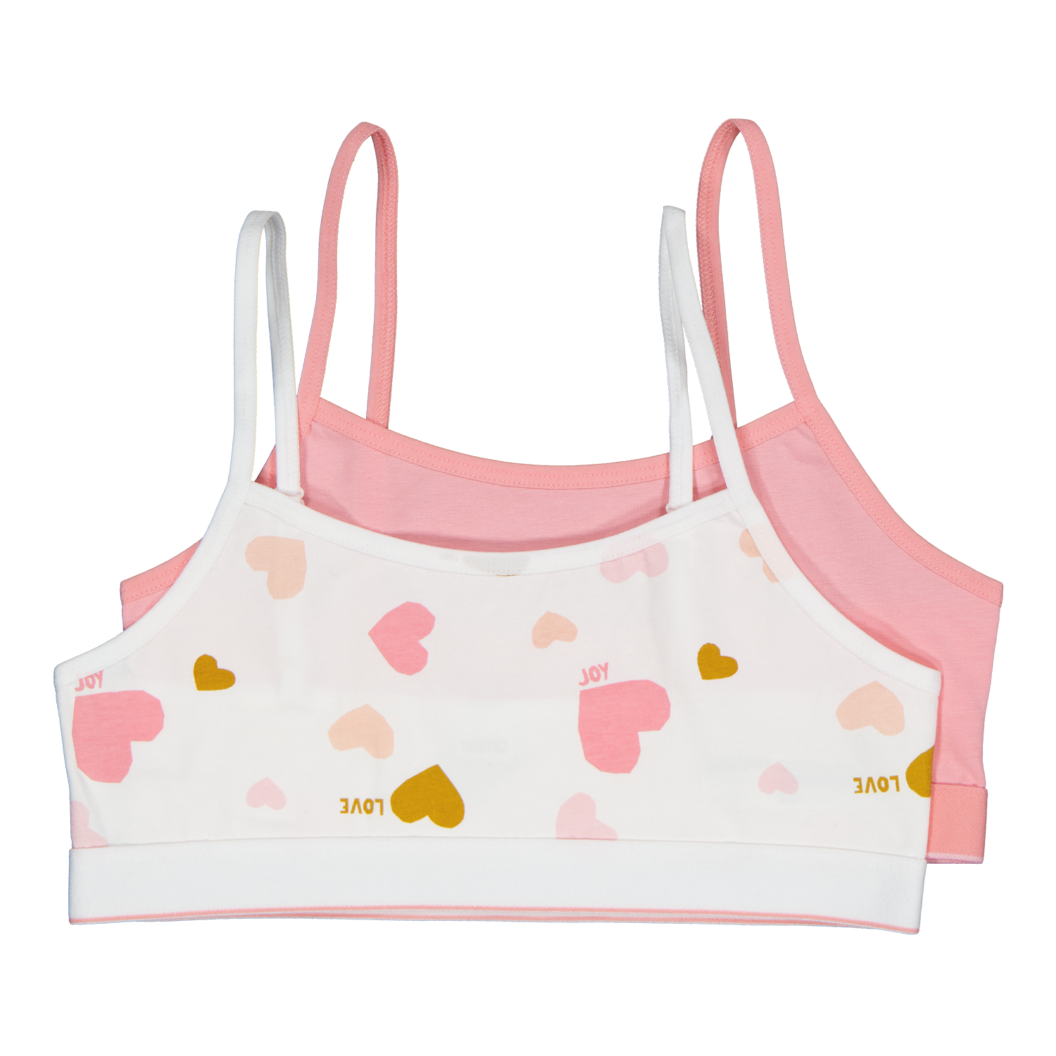 Deze set bevat twee croptops voor jongens en meisjes. Eén croptop is effen roze, de andere is wit met een patroon van roze, gele en perzikkleurige hartjes en het woord 'love'. Beide tops hebben smalle schouderbandjes en zijn gemaakt van een ribstof met 95% katoen en 5% elastaan, wat zorgt voor een comfortabele, zachte en rekbare pasvorm.