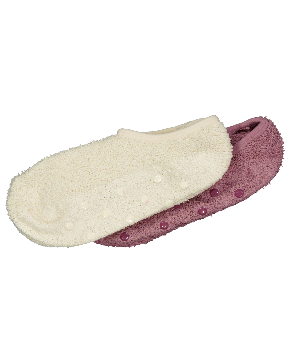 Deze dames voetjesokken zijn gemaakt van een zachte stof met 97% polyester en 3% elastaan. Ze zijn wit van kleur en voorzien van antislip nopjes onder de voet voor extra grip. Dankzij de lichte stretch biedt de stof een comfortabele en goed aansluitende pasvorm.