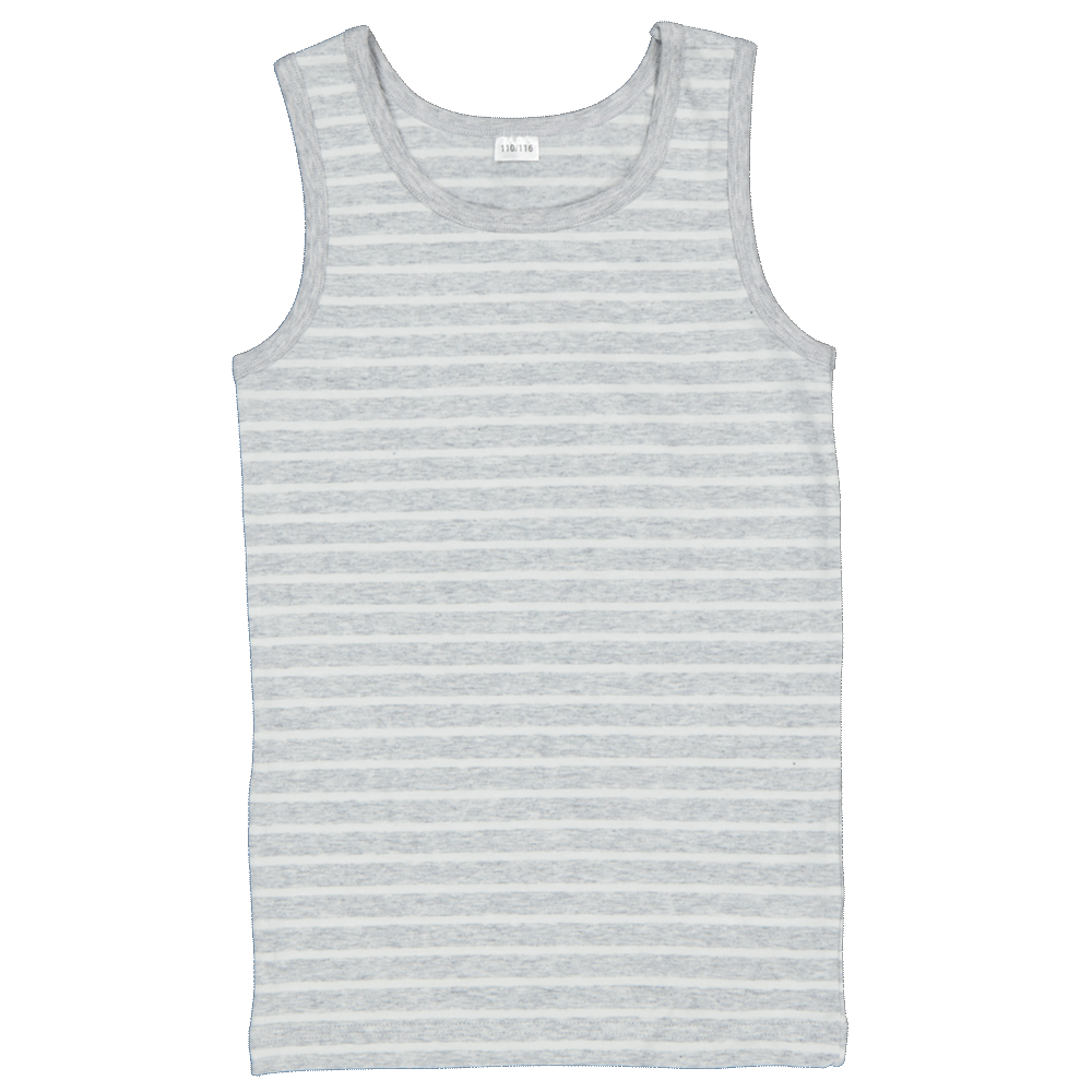Dit grijze jongenshemd is gemaakt van zachte katoen met een beetje elastaan. Het hemd heeft een fijn gestreept patroon en is mouwloos, waardoor het comfortabel zit en gemakkelijk meebeweegt. Ideaal om onder een shirt of trui te dragen. Door de soepele stof sluit het goed aan en voelt het prettig aan tijdens het spelen of naar school gaan.