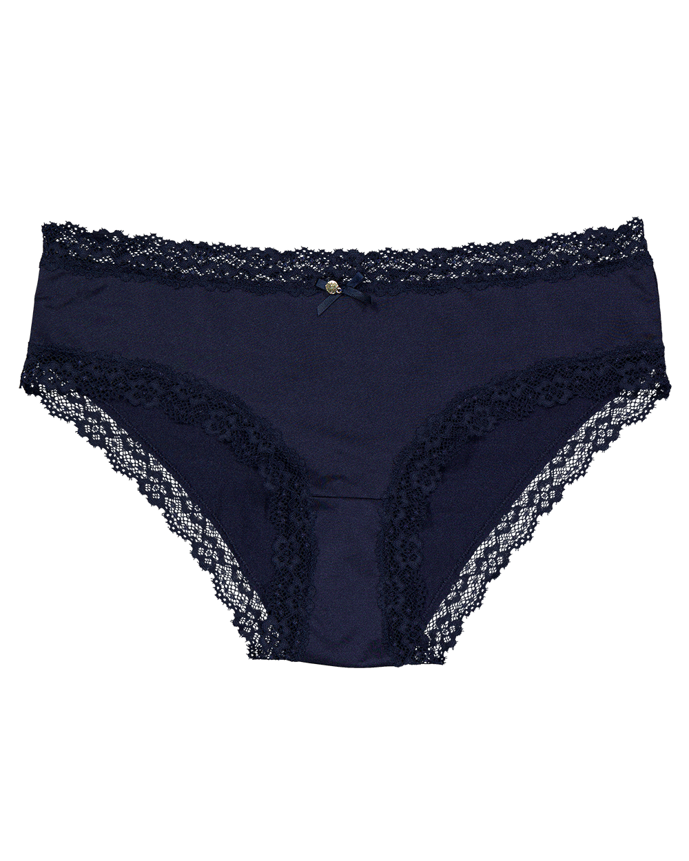 Deze dameshipster is gemaakt van kant, polyamide en elastaan. De hipster is blauw van kleur en heeft aan de voorkant een decoratief strikje. Dankzij het elastische materiaal sluit de hipster mooi aan en biedt hij optimaal draagcomfort.