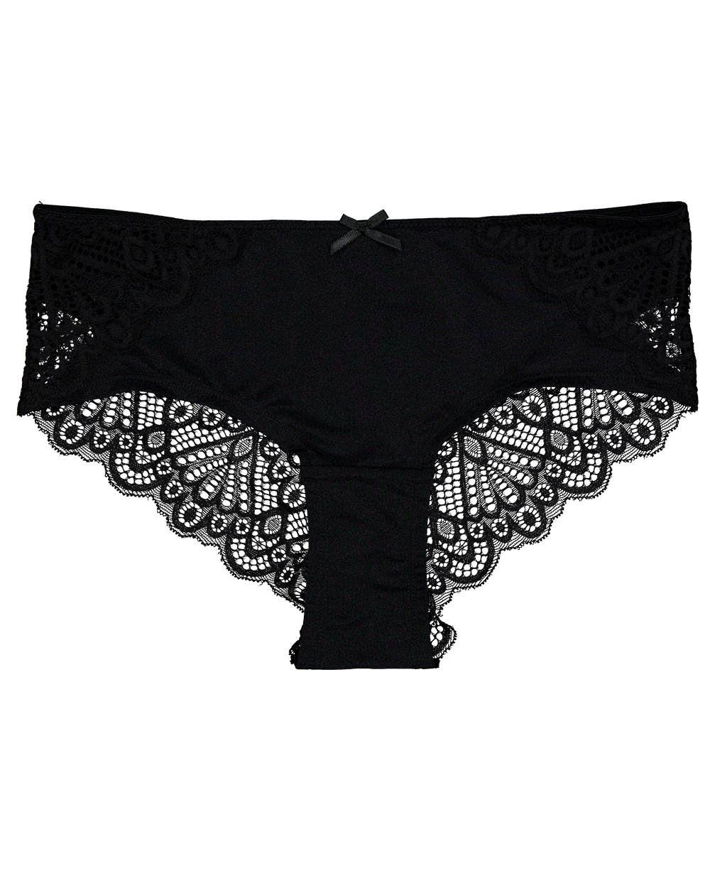 Deze zwarte dameshipster is gemaakt van kant en bestaat uit 85% polyamide en 15% elastaan. Dankzij het comfortabele materiaal sluit de hipster perfect aan zonder te knellen. Het elegante kant zorgt voor een subtiele, vrouwelijke uitstraling en biedt tegelijkertijd voldoende steun.