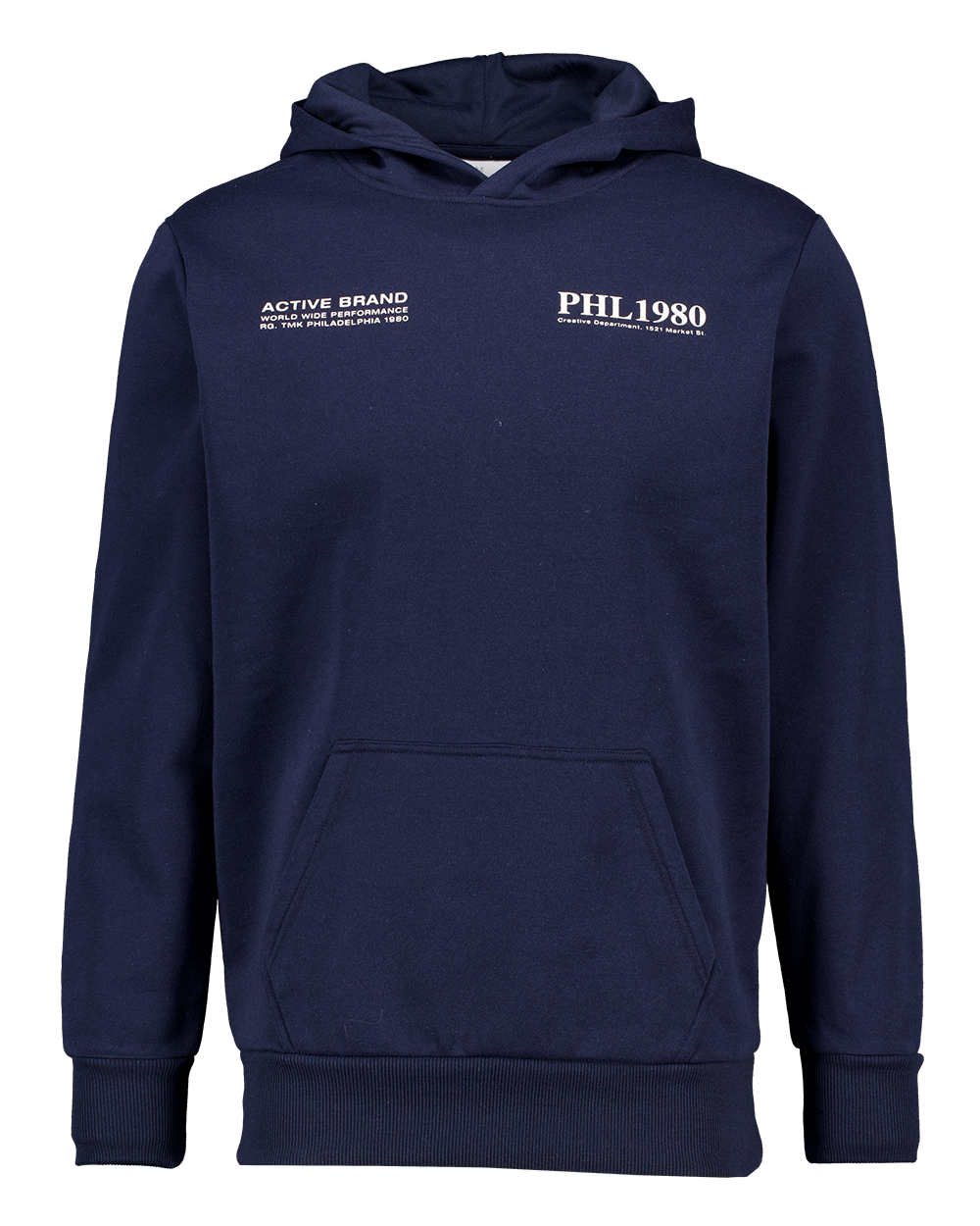 Deze blauwe hoodie voor mannen heeft een samenstelling van 70% polyester en 30% katoen. De capuchon biedt extra bescherming tegen weer en wind. De trui is geschikt voor een ontspannen, casual draagmoment. De zachte stof draagt comfortabel op de huid.