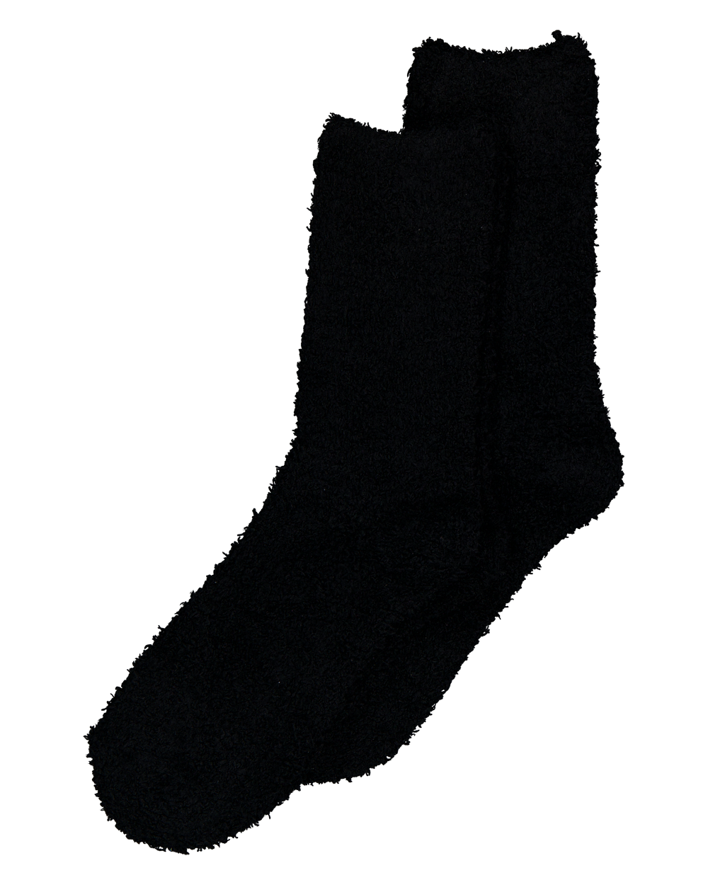 Deze zwarte dames huissokken zijn gemaakt van 99% polyester en 1% elastaan. Ze voelen zacht aan en hebben een pluizige structuur zonder opvallende details of patroontjes. De sokken zijn bedoeld om je voeten warm te houden binnenshuis. Dankzij de samenstelling sluiten ze comfortabel aan en bieden ze extra draagcomfort tijdens ontspannen momenten thuis. Per set ontvang je twee paar.