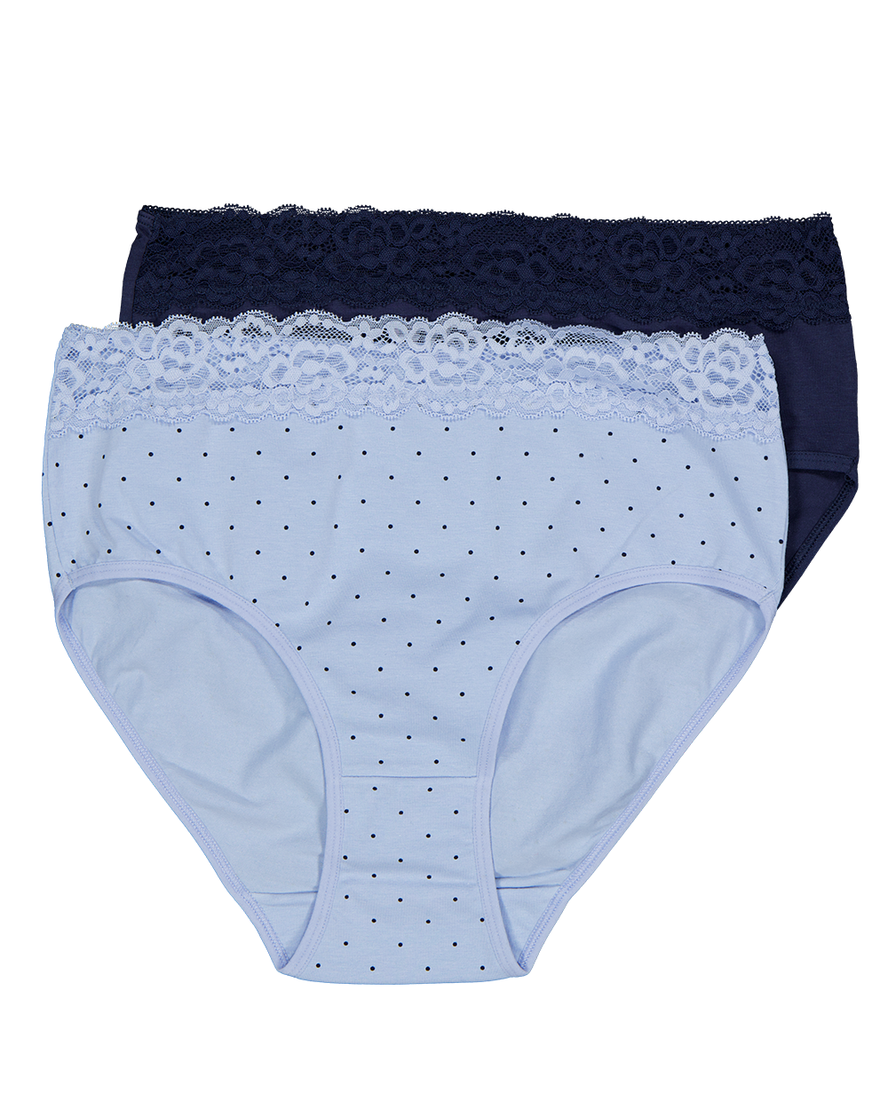 Deze dameshipsters zijn gemaakt van 95% katoen en 5% elastaan. Je ontvangt twee stuks in de kleur blauw. Dankzij het elastaan hebben ze extra rek voor optimaal draagcomfort en een perfecte pasvorm.