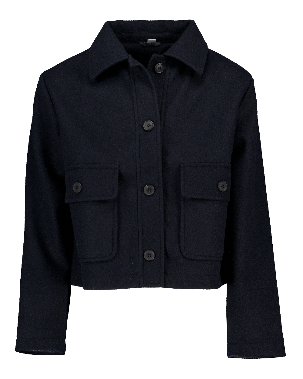 Deze meisjesjas is uitgevoerd in het blauw en heeft een knoopsluiting. De jas is gemaakt van 100% polyester, wat zorgt voor een lichte en sterke stof. Aan de voorkant bevinden zich twee klepzakken, ideaal voor het opbergen van kleine spullen.