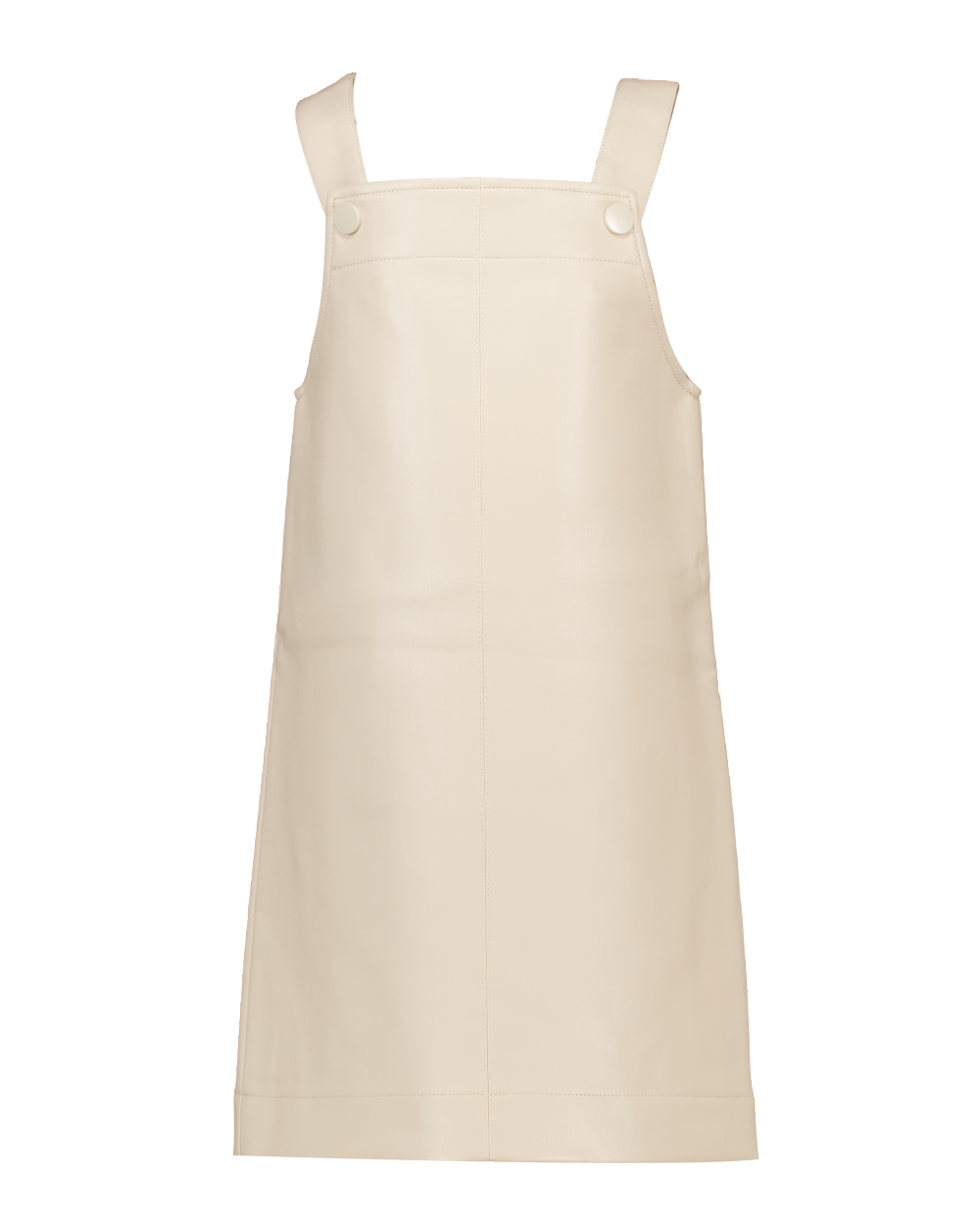 Deze beige jurk heeft een rechte, eenvoudige snit met brede schouderbanden die met knopen zijn bevestigd. De stof heeft een egale uitstraling zonder zichtbare patronen of decoratie. Gemaakt van 100% polyurethaan, wat zorgt voor een glad oppervlak. Door het praktische ontwerp is de jurk makkelijk aan en uit te trekken. Ideaal voor wie houdt van een rustige en nette uitstraling.