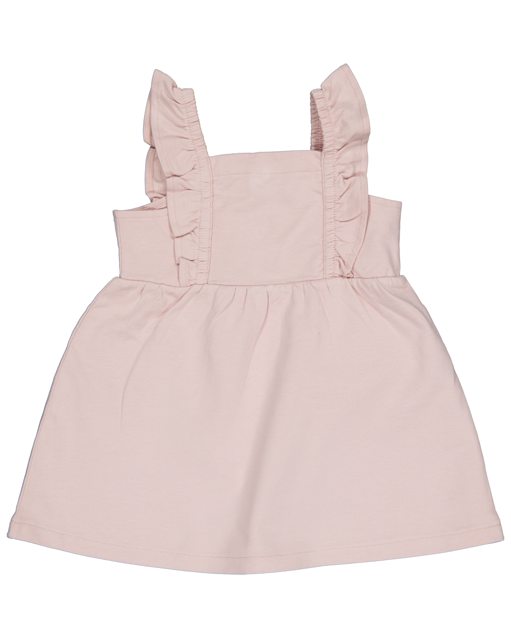 Deze jurk voor baby’s is in de kleur roze en geschikt voor jongens en meisjes. De jurk is gemaakt van 100% katoen, wat zorgt voor een zachte en comfortabele stof. Het eenvoudige model heeft gerimpelde bandjes voor een subtiele afwerking.