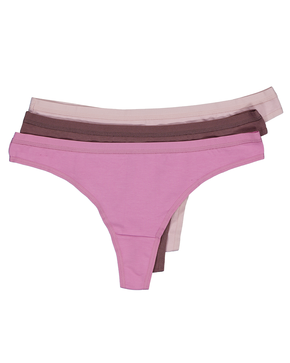 Deze damesstrings zijn gemaakt van katoen met een klein percentage elastaan voor extra stretch. De set bevat drie strings in verschillende paarstinten. Dankzij de eenvoudige pasvorm zitten ze comfortabel onder je kleding.