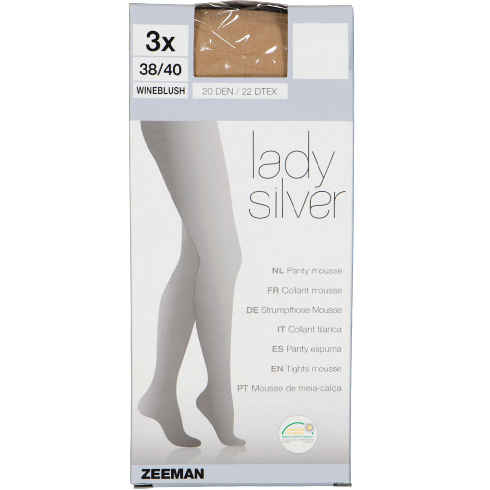 Deze set van 3 bruine Lady silver panty's voor dames heeft een comfortabele pasvorm. Ze zijn gemaakt van 100% polyamide met een dikte van 20 denier. Dit zorgt voor een lichte, soepele bedekking van de benen. Door de elastische stof zitten de panty's prettig en kun je ze makkelijk dragen onder een rok of jurk.