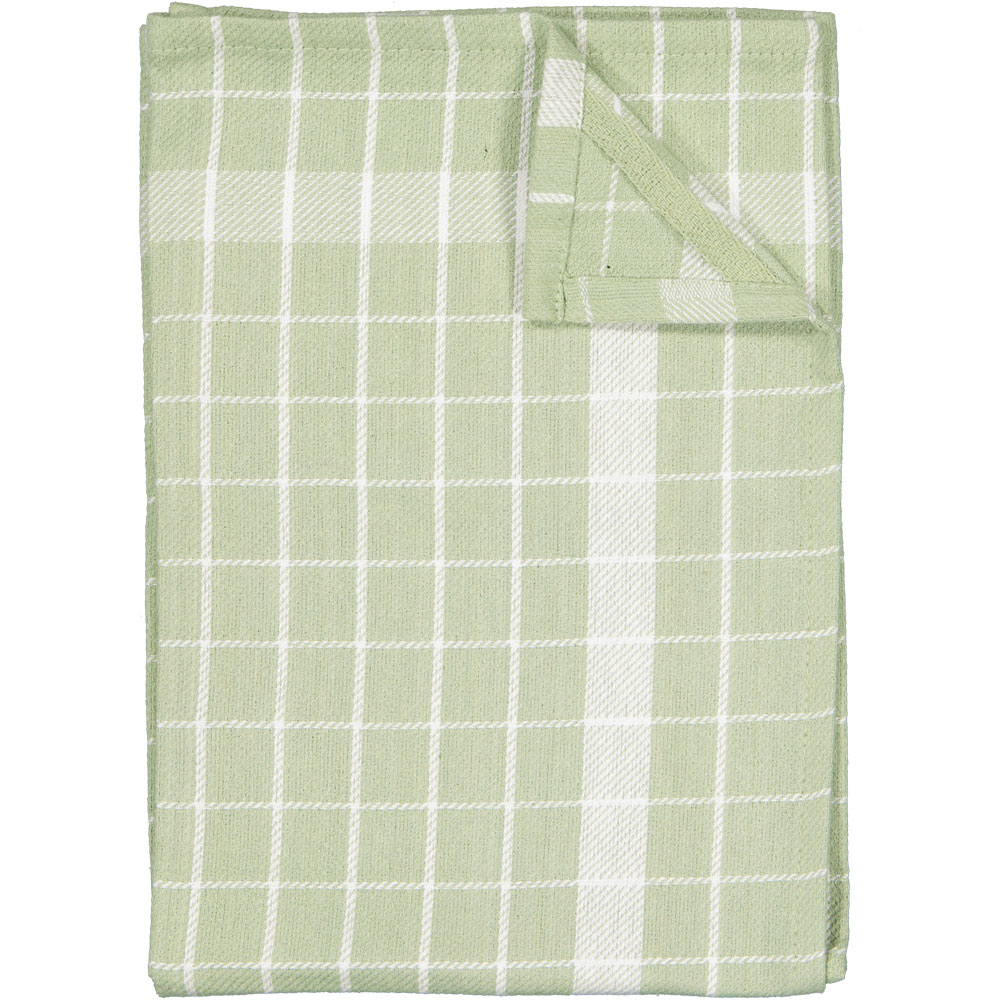 Deze theedoek is gemaakt van katoen en heeft een lichtgroene kleur met een wit ruitpatroon. De stof voelt stevig aan en is geschikt voor het afdrogen van servies of het schoonmaken van het aanrecht. Door de vierkante vorm van 63 bij 63 cm krijg je een doek die ruim genoeg is om verschillende keukentaken aan te pakken. De naden zijn duidelijk zichtbaar en zorgen voor een nette afwerking waardoor de doek lang meegaat. Het ophanglusje maakt het makkelijk om de theedoek netjes op te hangen.