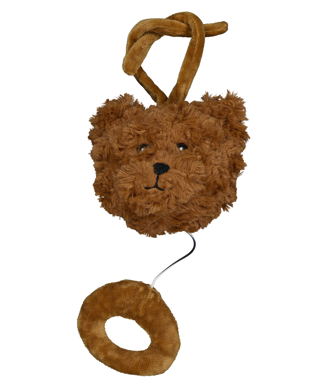 Deze muziekdoos heeft een zachte uitvoering in de kleur bruin en is in de vorm van een dierenkop. Je kunt de ring aan de onderkant trekken om muziek te laten horen. Dankzij het zachte materiaal is deze geschikt om mee te knuffelen.