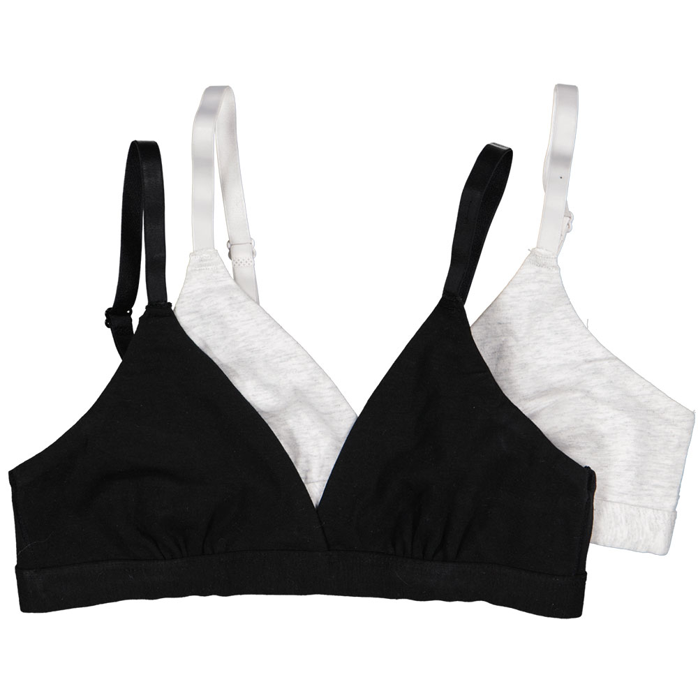 Deze zwarte bh is speciaal ontworpen voor tienermeisjes en bestaat uit 95% katoen en 5% elastaan. De zachte stof biedt optimaal comfort. Je ontvangt twee bh’s die lichte ondersteuning geven en ideaal zijn om te wennen aan het dragen van lingerie.