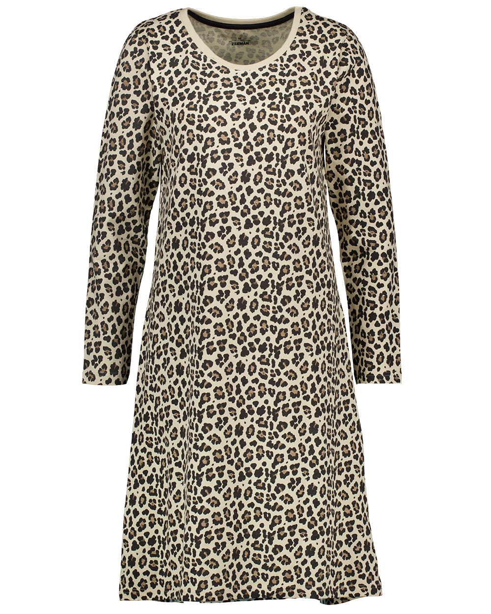 Dit beige nachthemd voor dames heeft een lange mouw en een ronde hals. Het is gemaakt van single jersey met 95% katoen en 5% elastaan, wat zorgt voor een zachte stof met iets rek. Het nachthemd biedt comfortabele slaapmogelijkheden.