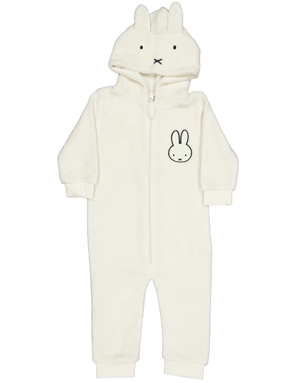 Deze beige onesie voor baby's is gemaakt van zacht coral fleece. Hij heeft lange mouwen en een lange pijp. De capuchon met oren en het geborduurde Nijntje-motief maken het comfortabel en speels voor de allerkleinsten.