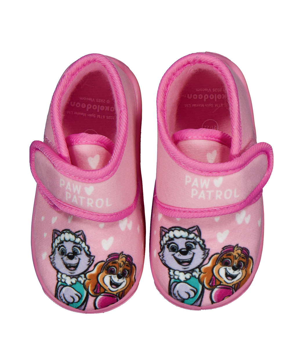 Deze roze pantoffels hebben een afbeelding van twee honden en zijn geschikt voor baby's. Door de sluiting blijven de pantoffels goed om de voet zitten. Ze bieden warme bescherming voor kleine voeten binnen huis.