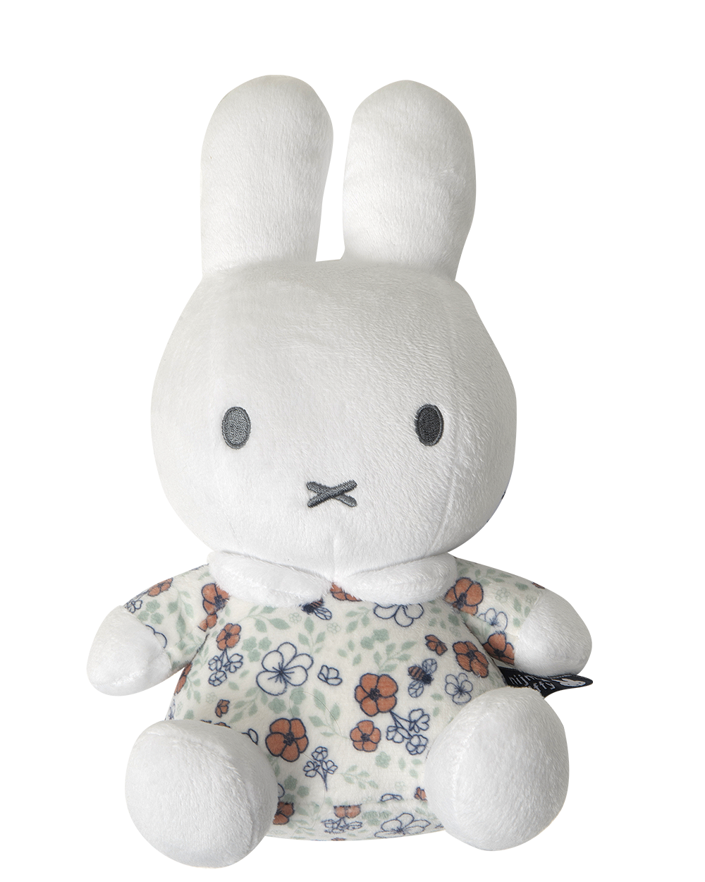 Deze witte pluchen knuffel van Nijntje is gemaakt van zachte stof en heeft een bloemenpatroon in verschillende kleuren op het lijfje en de armen. Door het zachte materiaal is deze knuffel prettig om vast te houden en fijn om mee te knuffelen of te spelen.