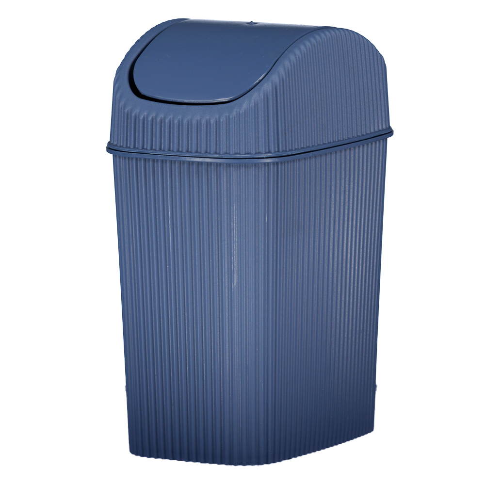 Deze blauwe prullenbak is een praktisch en stijlvol artikel voor in huis. Gemaakt van 100% polypropyleen, biedt hij een stevige en betrouwbare oplossing voor je afval. Het ontwerp met ribbels geeft hem een moderne uitstraling. Dankzij de handige deksel blijft je ruimte netjes en schoon.