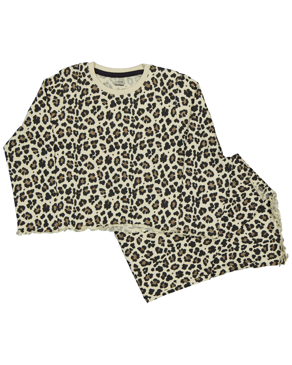 Deze pyjama voor meisjes is gemaakt van een enkeljersey breisel met 95% katoen en 5% elastaan. De pyjama heeft een lange mouw, een lange broek en een ronde hals. Het materiaal is zacht en biedt comfort tijdens het slapen.