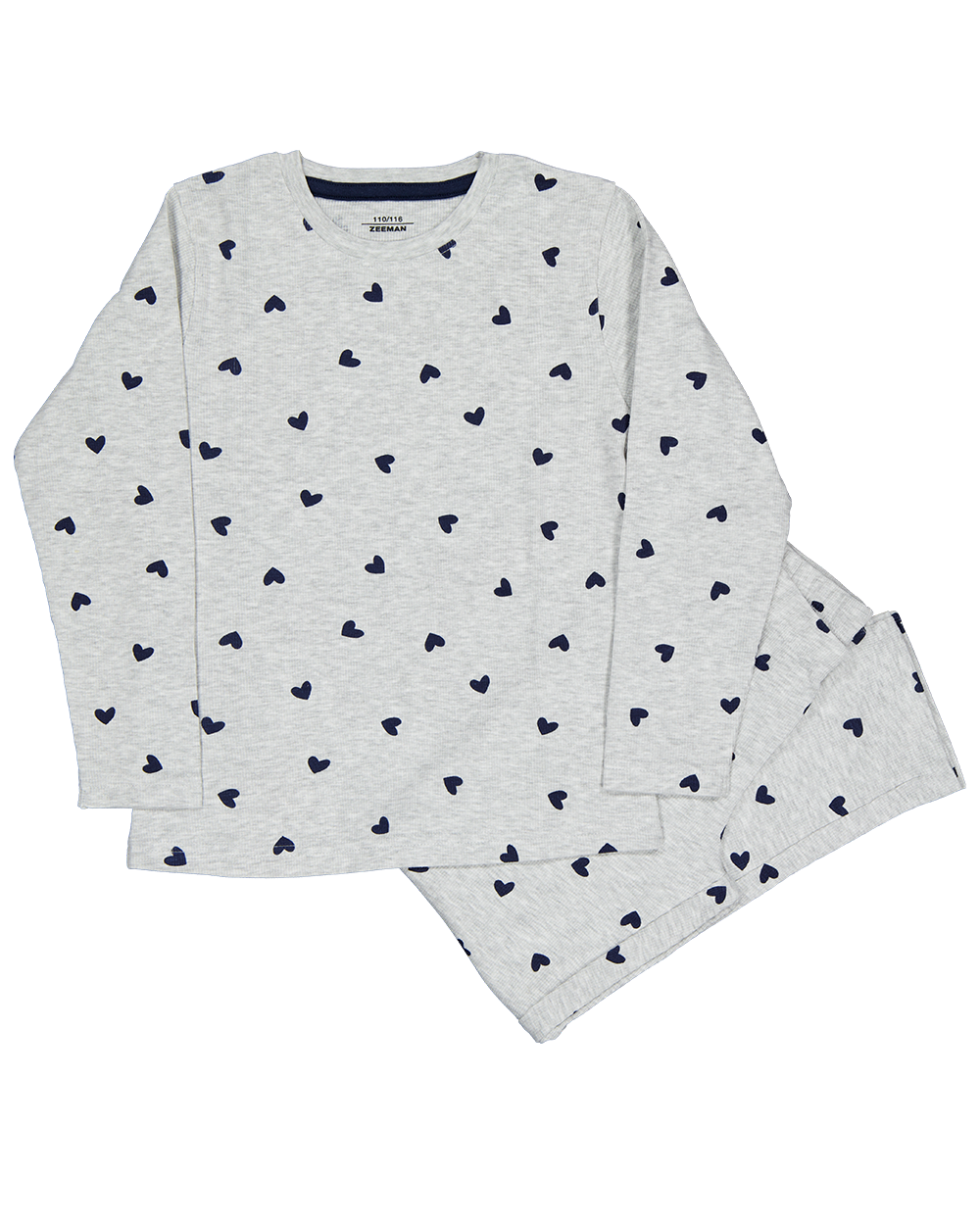 Deze pyjama voor tienermeisjes heeft een lange broek en lange mouwen. De grijze ribstof bestaat voor het grootste deel uit katoen met een beetje elastaan voor meer comfort. De pyjama heeft een ronde hals en is geschikt om lekker in te slapen.