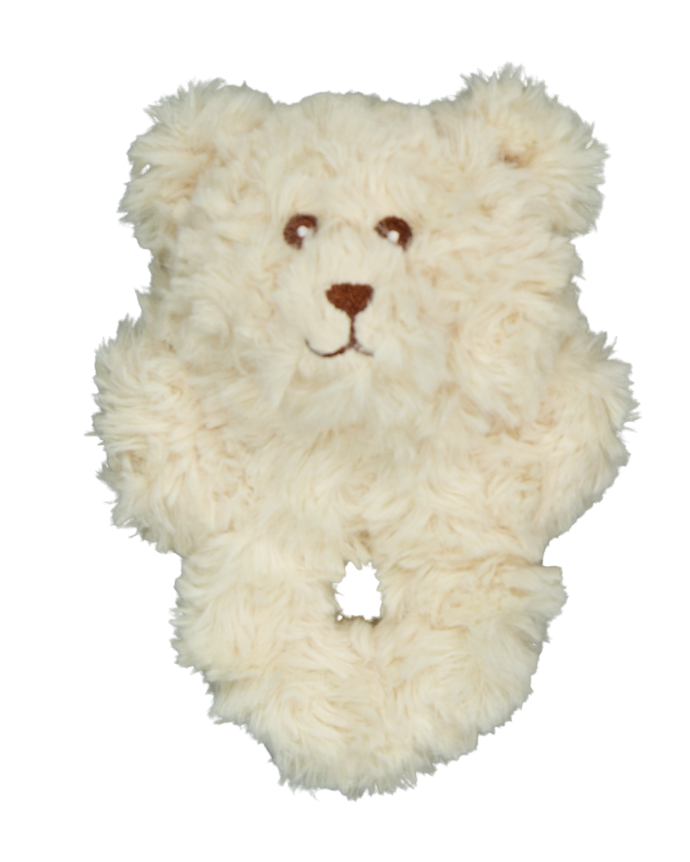 Deze rammelaar heeft een zachte, witte stof en een vorm die makkelijk in kleine handjes past. Je geeft hiermee je baby een prettig speelmaatje dat geluid maakt bij het bewegen. De neutrale kleur maakt de rammelaar geschikt voor jongens en meisjes.