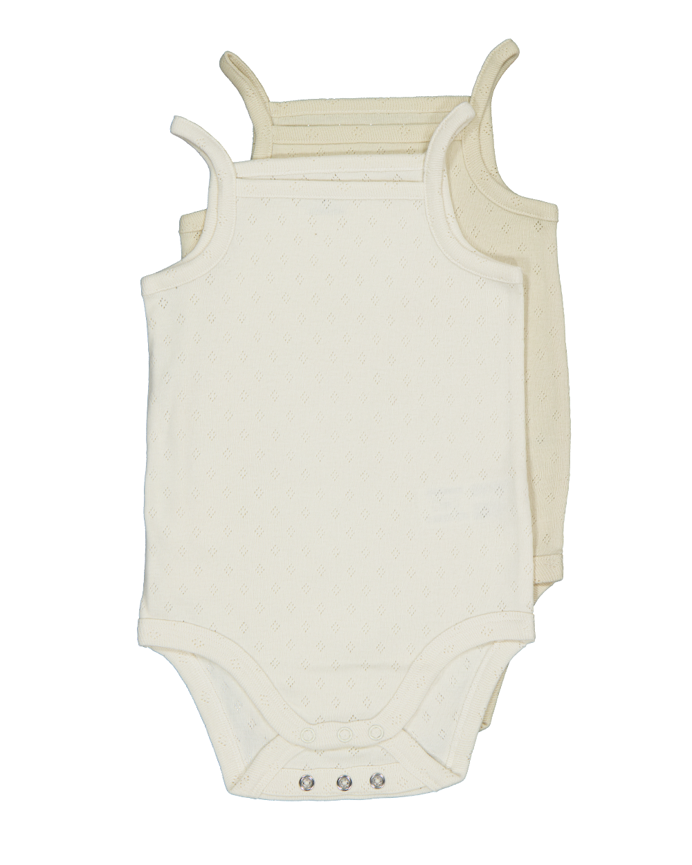 Deze set bestaat uit twee rompers voor baby's in neutrale, lichte tinten. Beide rompers hebben smalle schouderbandjes en zijn gemaakt van 100% katoen, wat zorgt voor een zacht en comfortabel gevoel op de huid. Dankzij de handige drukknoopjes aan de onderzijde kun je eenvoudig verschonen. De eenvoudige afwerking maakt deze rompers praktisch voor dagelijks gebruik.
