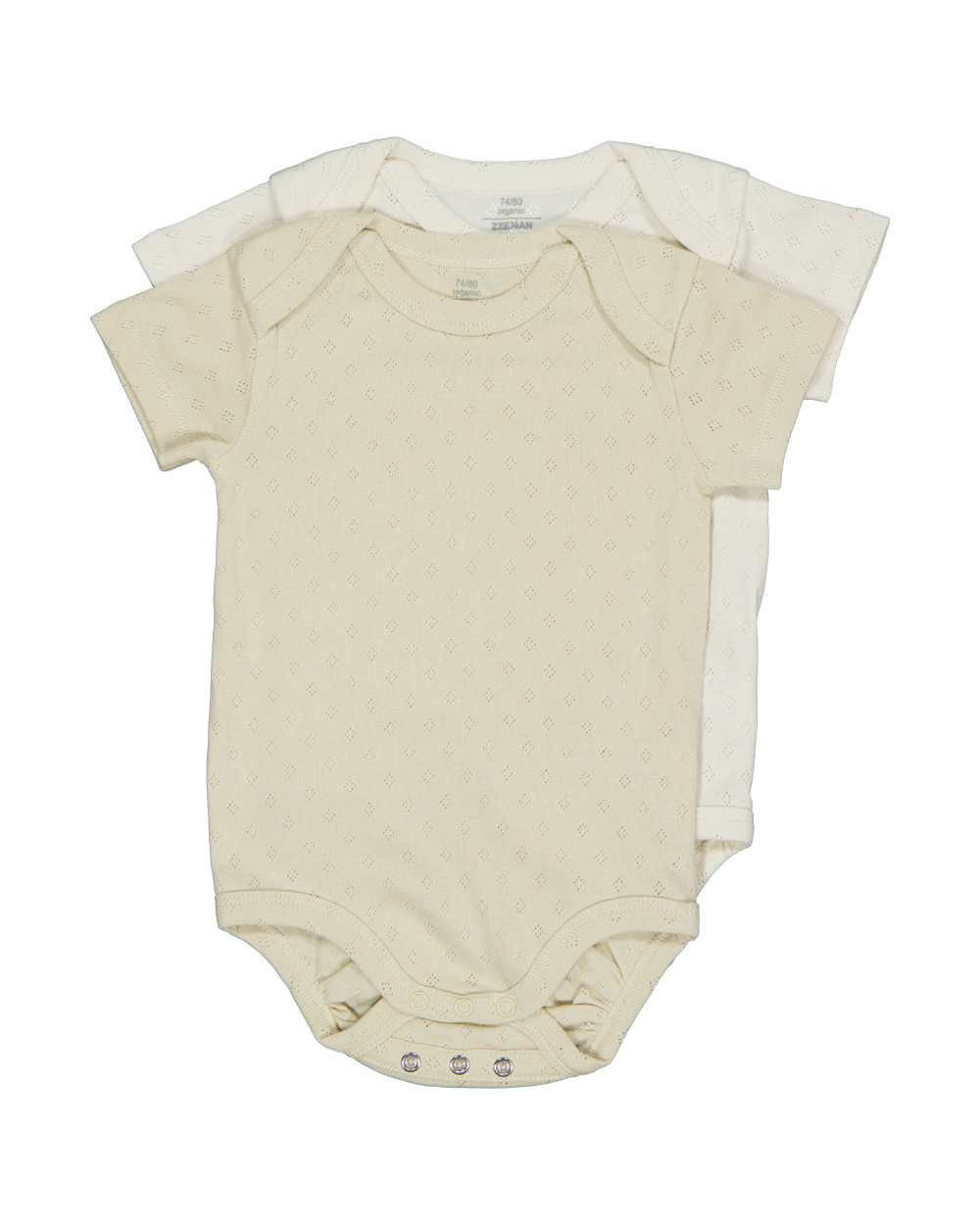 Deze romper is gemaakt van 100% katoen, wat zorgt voor een fijne en comfortabele pasvorm. Het is een set van twee, zodat je altijd een schone romper bij de hand hebt. De neutrale witte kleur maakt het makkelijk te combineren met andere kleding. Ideaal voor elke baby.