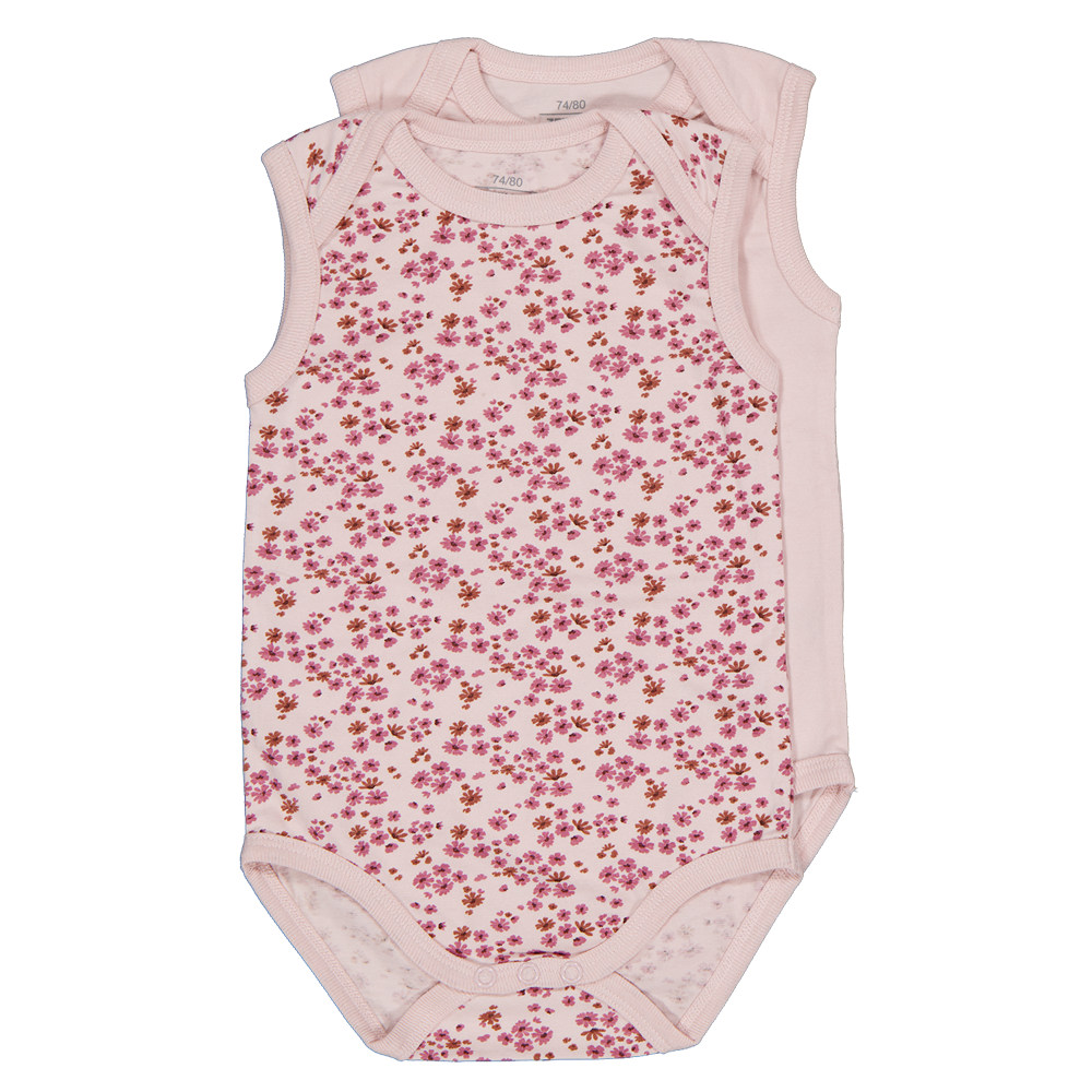 Deze set bevat twee mouwloze rompers voor baby's. Eén romper heeft een bloemenpatroon in roze en roodtinten, de andere is effen roze. Gemaakt van 97% katoen en 3% elastaan, waardoor de stof zacht en licht elastisch aanvoelt. De envelophals zorgt ervoor dat je de romper gemakkelijk aan- en uittrekt. Ideaal voor dagelijks gebruik of als extra laagje.