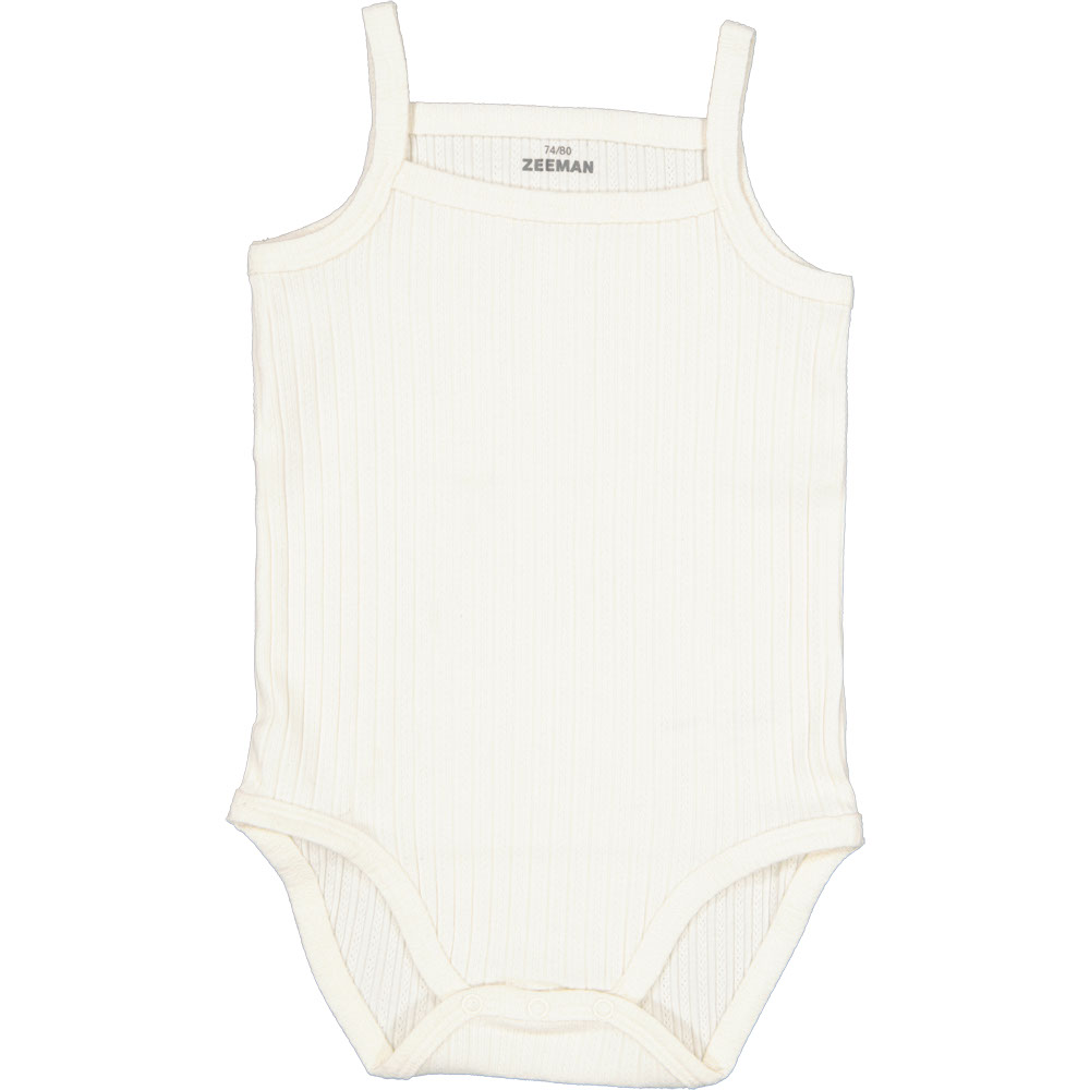 Een baby romper is een veelzijdig item. Dit komt doordat hij goed te dragen is als onderkleding wanneer het wat koeler is en als bovenkleding tijdens de warmere dagen. Deze baby romper in de kleur gebroken wit voorkomt een blote rug of buik doordat hij uit één stuk bestaat. Zo kan de kleine rollen, spelen en kruipen en blijft de lichaamstemperatuur op peil. Ook blijft onderkleding, zoals bijvoorbeeld een luier, hierdoor goed op zijn plek zitten. Met de drukknopen aan de onderkant is hij gemakkelijker aan en uit te trekken, wat extra handig is bij snelle luierwissels.