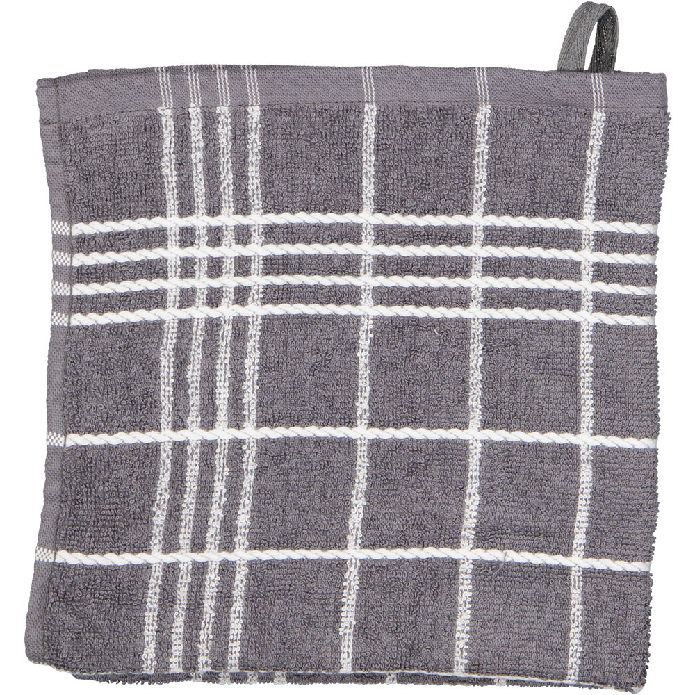 Deze grijze keukendoek met wit ruitpatroon is gemaakt van stevig katoen, wat zorgt dat vocht goed wordt opgenomen. Hierdoor kun je makkelijk je handen of het aanrecht afdrogen. De doek is vierkant en heeft een formaat van 50 x 50 cm. Dankzij de tijdloze kleur past hij in vrijwel elke keuken. Hang ‘m eenvoudig op aan het stevige ophanglusje, zodat hij altijd binnen handbereik is.