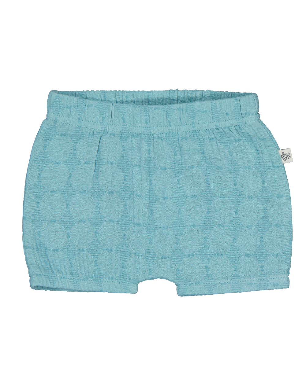 Deze korte broek in de kleur blauw is gemaakt van 100% katoen. Deze unisex broek is geschikt voor baby's en heeft een elastische tailleband voor extra comfort. Het lichte materiaal zorgt voor draaggemak bij warm weer.