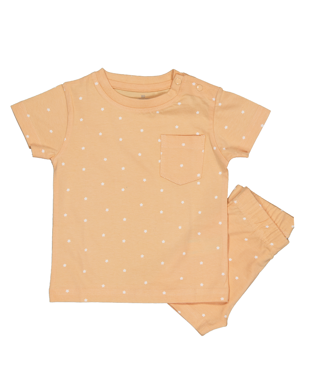Deze shortama in de kleur roze is gemaakt van 100% katoen. De unisex babyset bestaat uit een shirt en korte broek, beide licht van gewicht. Het materiaal voelt zacht aan en zorgt voor een comfortabele pasvorm tijdens warme dagen.