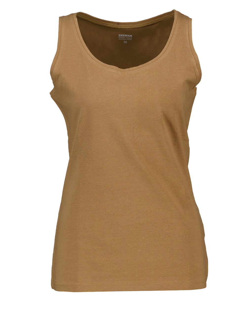 Deze bruine singlet voor vrouwen is gemaakt van 95% katoen en 5% elastaan. Het materiaal zorgt voor een comfortabele pasvorm door de rekbaarheid. De singlet heeft een eenvoudig ontwerp en biedt een prettig draaggevoel bij verschillende activiteiten.