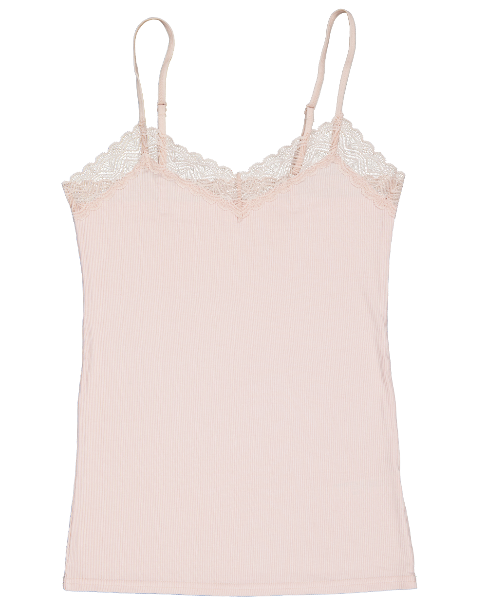 Deze roze singlet voor dames is gemaakt van katoen en elastaan, met een kanten detail van polyamide en elastaan. De singlet heeft smalle, verstelbare bandjes en een kanten rand langs de halslijn. Het zachte materiaal biedt optimaal draagcomfort.
