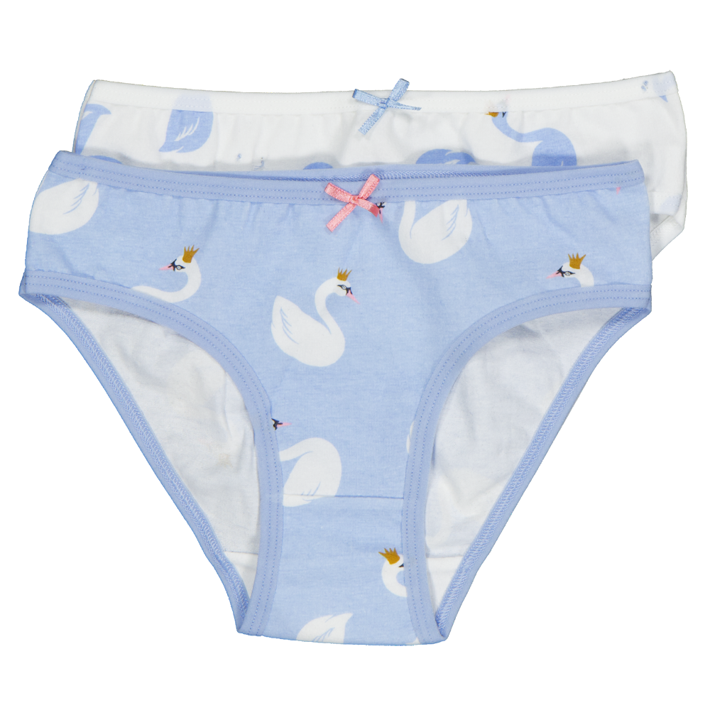 Deze set bestaat uit twee slips in de kleuren blauw en wit, beide hebben een vrolijke zwanenprint. Ze zijn gemaakt van 95% katoen en 5% elastaan. Dit zorgt voor een zachte en rekbare stof die comfortabel zit. De elastische tailleband houdt de slips goed op hun plek. De gladde afwerking maakt dat ze netjes onder kleding passen.