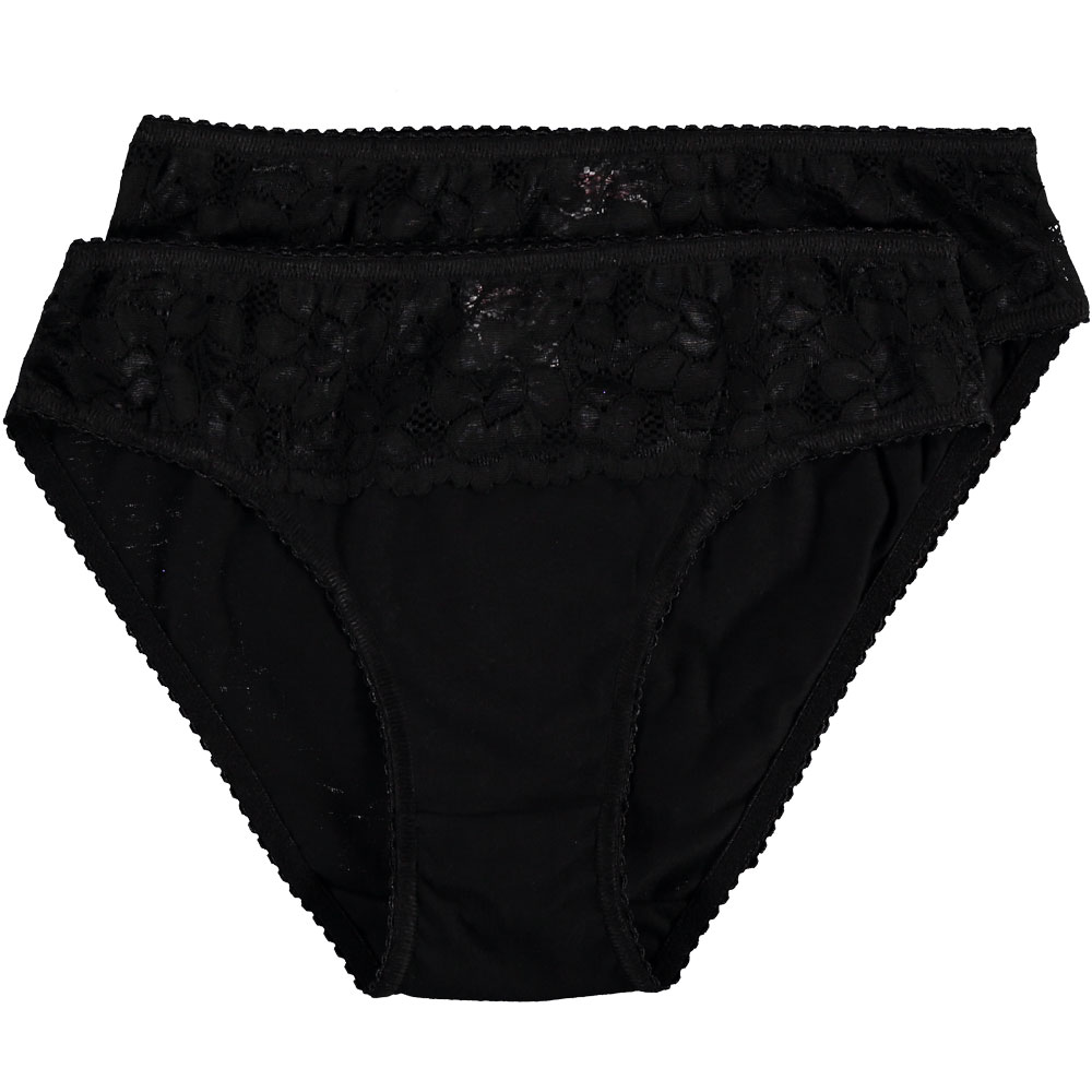 Soms zoek je een slip met nét iets extra's. Deze zwarte dames slip heeft een brede, kanten inzet aan de bovenkant. Dat geeft hem een elegante uitstraling, zonder in te leveren op de pasvorm. Doordat de mix van katoen en elastaan is de stof namelijk zacht en licht rekbaar. Zo sluit hij goed aan en beweegt hij mee met je lichaam, waardoor hij de hele dag fijn zit. Katoen ademt ook goed, waardoor hij ook fijn draagt op warme dagen. In deze set zitten 2 slips.